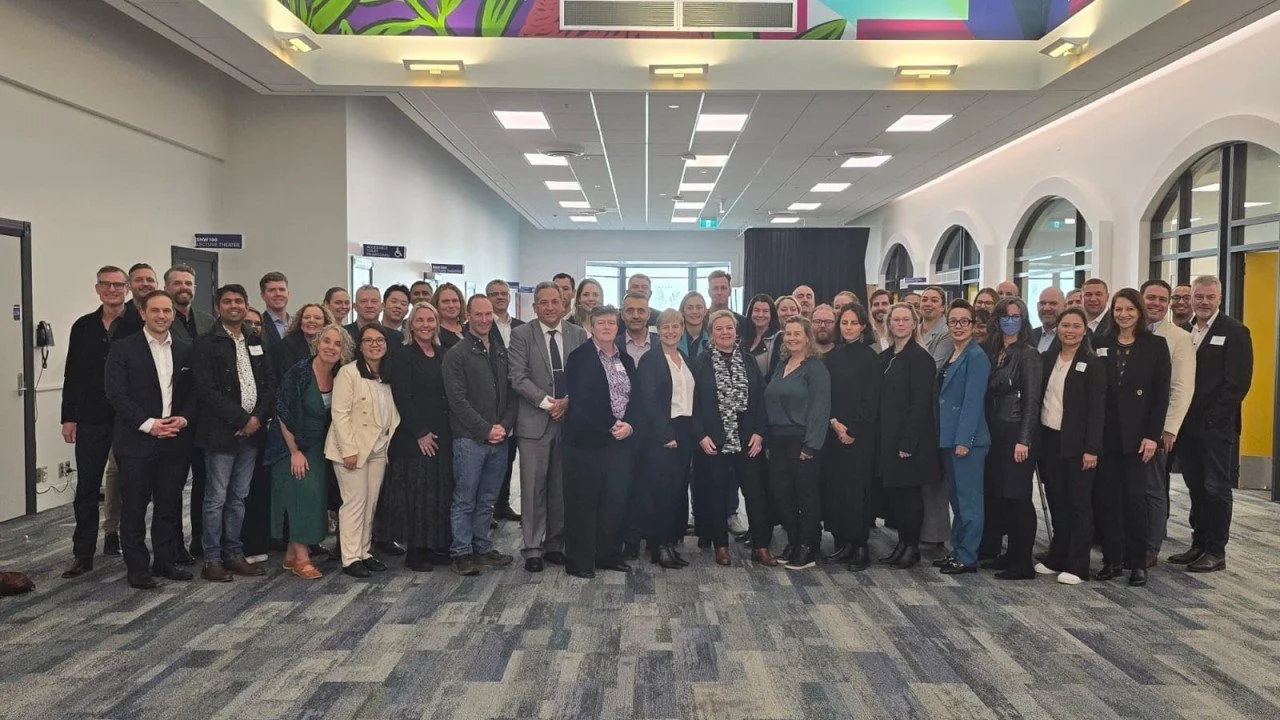 Photo of both the Airport and Albany Cohort of EMBA students, business leaders and lecturers