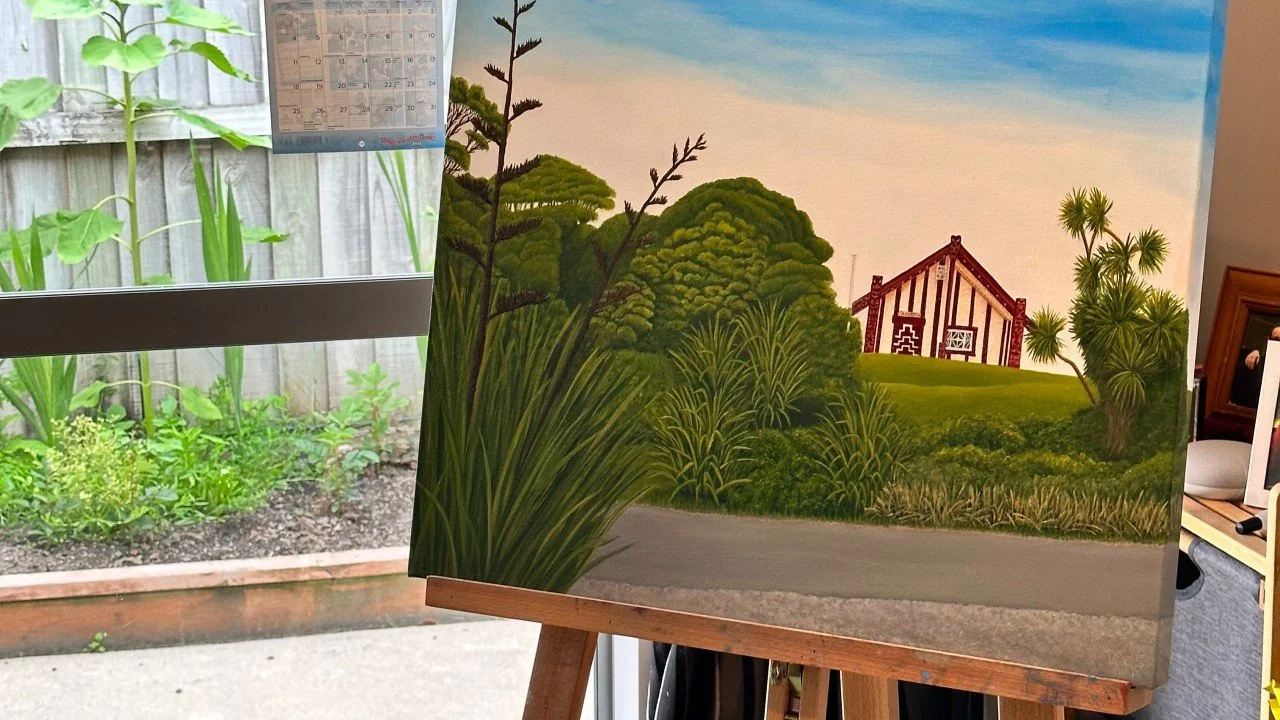 Tamatea te whāre at Ōtakau Marae painted by Donna Howes